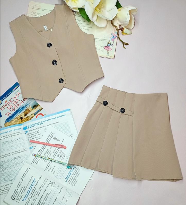 нов мод 🍂🍂🍂Новинка осень🍂🍂🍂 Школьная коллекция Крутой костюм двойка жилет+юбка тканина костюмка юбочка сзади на резинке В живую выглядит супер 😍 размер/длина жилета/пог/длина юбки/пот 📌122(1шт)-35/37/34/26 📌140(1шт)-39/40/40/30