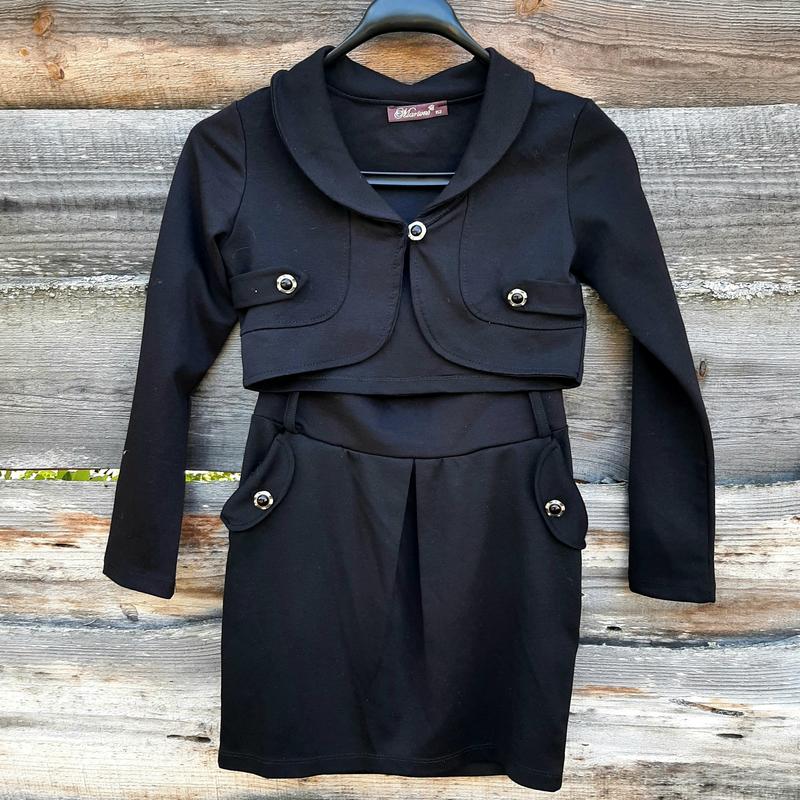 Пиджак укороченный. Спідниця пряма. ткань трикотажная. есть небольшая затяжка на фото видно.