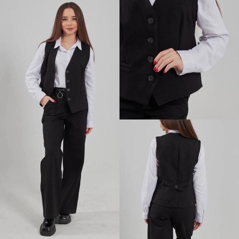 Классический костюм жилет+ палаццо ткань плотная полушерсть тянется Жилет на пуговицах с карманами палаццо в поясе сзади под резинку пояс в комплекті КАЧЕСТВО ЛЮКС!! Рост/длин.жилета/пог/длин.палаццо/крок/пот/поб Похибка+-2см 140-146/46/37/87/61/28/42 152-158/49/39/96/66/29/45