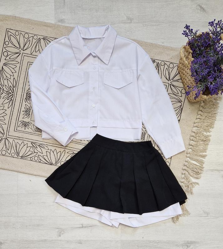 ира б 😍НОВИНКА 🥰 Невероятно красивый костюмчик Ткань рубашки коттон, застегивается на пуговицы Шорты юбочка костюмка+коттон,в поясе на резинке Цвет юбочки черный КАЧЕСТВО ЧУДОВАЯ РЕКОМЕНДУЯ 💐 На детках сидит просто фантастически красиво🥰 блуза длин/рукав от горловины/пог/шорты-юбка джиг/пояс 134р-41/58/45/32/26 140р-42/60/46/33/27 146р-43/61/47/34/28 152р-45/63/49/36/29 +-2 см