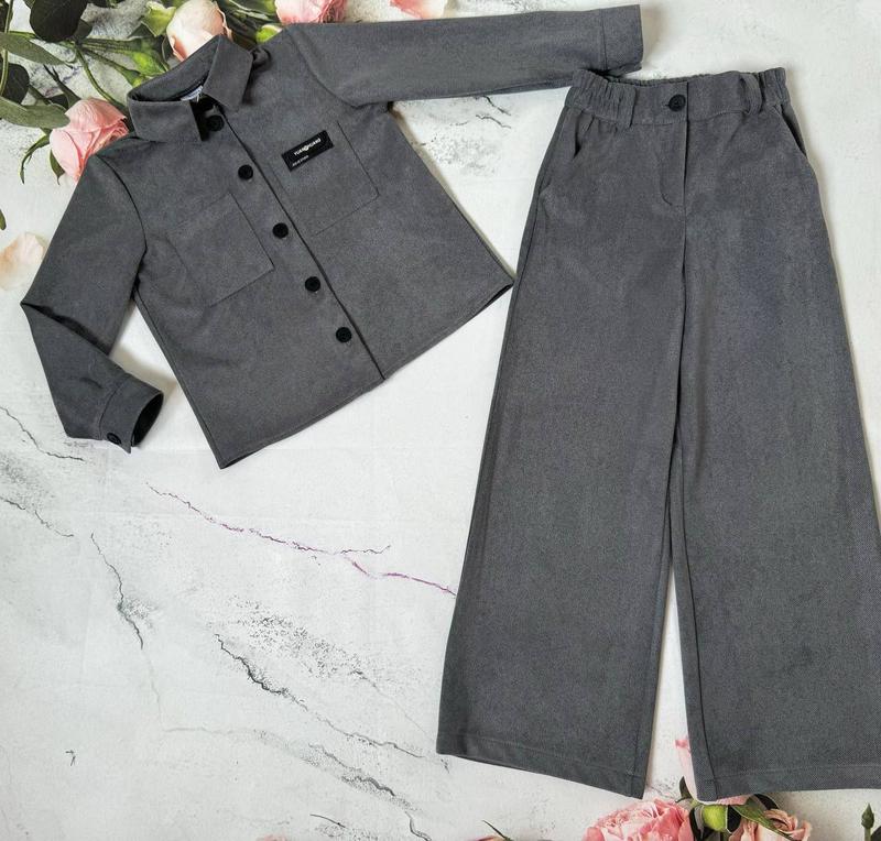 Костюм для девочки Размеры: 122,128,134,140,146,152; Цена: 900 грн Ткань : Замш диагональ Черный Серый