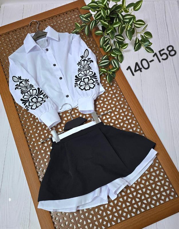 🥰Костюмчик двійка: шорти-спідничка та сорочка шорти-спідничка тканина тіар,позаду на резинці блуза тканина котон,з вишивкою ЧУДОВА 158-1 шт 🌷158-довжина сорочки 52,пог 50,рукав від горловини 66/46,шорти довжина 40,пояс 28 +-2 см