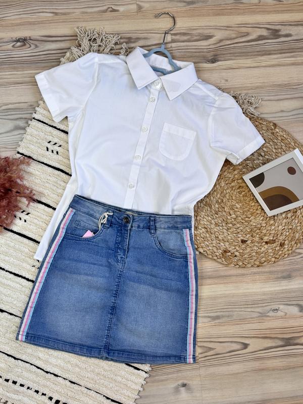 Школьный стильный образ для девочки 134 см Рубашка длина 53, пог 40 Юбка длина 37,пояс 29,бедра 37 (юбка стрейчевая,гарно тянется) Цена комплекта 300 грн