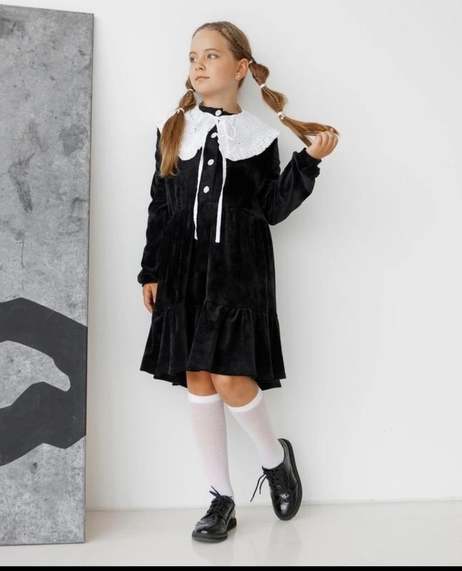 Платье в стиле оверсайз,ткань бархат!!! хит сезона -съемный воротник !!! Цвет чёрный Размеры 128-1шт 128 рост дл- 70см рук-45 см пог-40