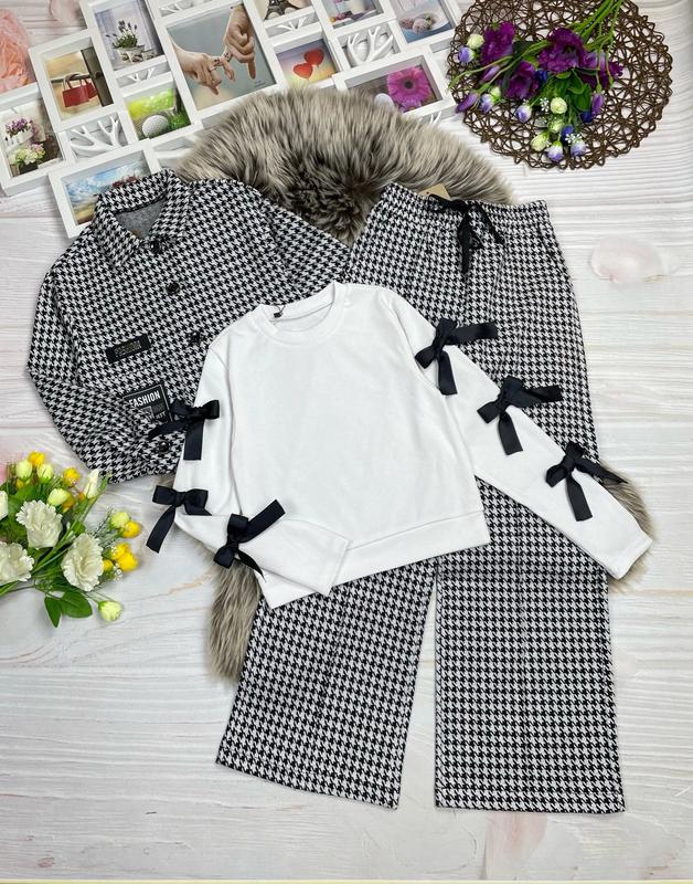 🎀НОВИНКА🎀 Стильный костюм для красавиц 💗 Рубашка-жакет + гольф+ штаны палаццо Ткань плотный турецкий трикотаж, гольф ткань рубчик Жакет застегивается на пуговицы, в брюках пояс резинка + шнурок рабочий Замеры: длина жакет/пог/рукав от горловины/длина брюки/крок/бедра/пояс/ длина кофта/рукав от плеча/пог 134 - 39/38/59. 86/62/44/28. 35/47/32 140 - 40/41/62. 90/65/46/29. 38/49/33 146 - 43/43/65. 94/68/48/30. 42/52/35 152 - 44/45/66. 98/71/50/31. 45/54/37 158 - 46/46/68. 100/74/52/32. 47/56/39 164 - 47/49/71. 102/76/53/32. 49/58/40 +-2см 134 - 3 140 - продано 146 - 1 152 - 1 158 - 3 164 - 3 Арт саш