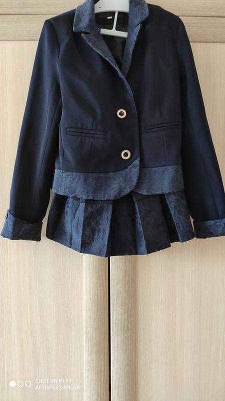 Костюм школьный на девочку. Пиджак длина по спинке 38 см, ширина под руками 32,5 см, рукав от плеча 45,5 см. Юбка длина 35 см, пояс 25 см, бедра 32 см.