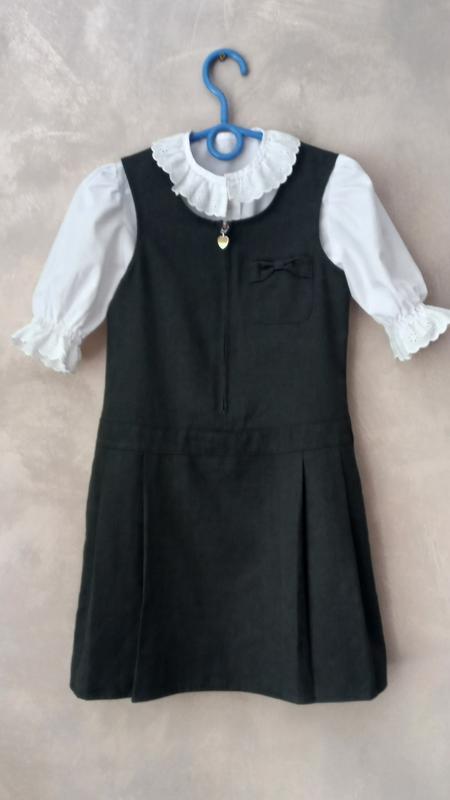 Нарядная школьная форма для девочки. Цена указана за весь комплект. ***ЗАМІРИ*** Сарафан: Длина - 66 см ПОГ - 33 см Блуза с коротким рукавом: Длина - 39 см ПОГ - 33 см Рукав - 25 см (есть резиночка, рукав-фонарик, очень красиво смотрится) Рубашка с длинным рукавом: Длина - 45 см ПОГ - 34 см Рукав - 43 см