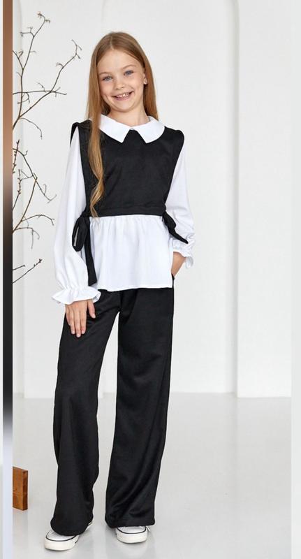 Шкільний комплект трійка для дівчинки: блуза, жилет, штани. Все можна носити окремо.