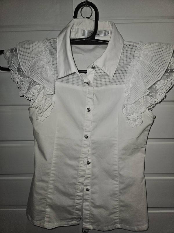 блузка белоснежная,100% котон,одета была один раз,на бирке написано 128 рост