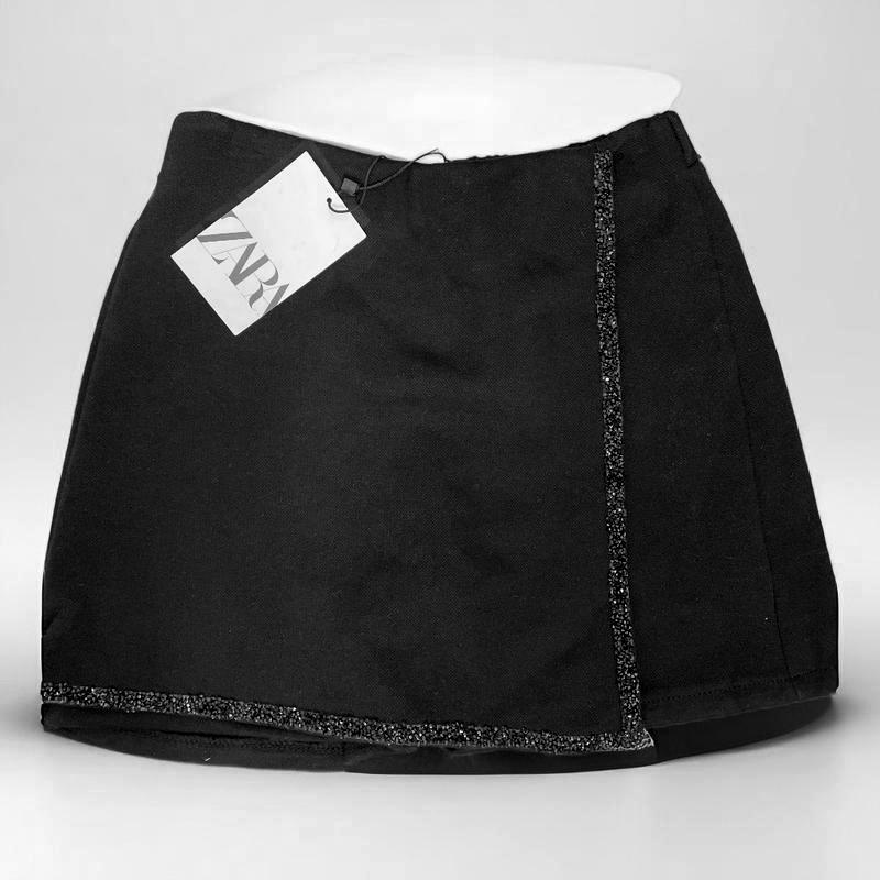 Юбка-шорти ZARA 11-12 років (152см) Стильні чорні юбка-шорти з декоративною обробкою блискітками по краю. Модель із запахом спереду, застібка на блискавку збоку. Підійдуть для святкового образу або на кожен день. ✅ Колір: чорний ✅ Бренд: ZARA ✅ Стан: нові, з біркою *********************** Доставка за рахунок покупця транспортними компаніями Нова пошта або Укрпошта. Пишіть, із задоволенням відповім на всі ваші