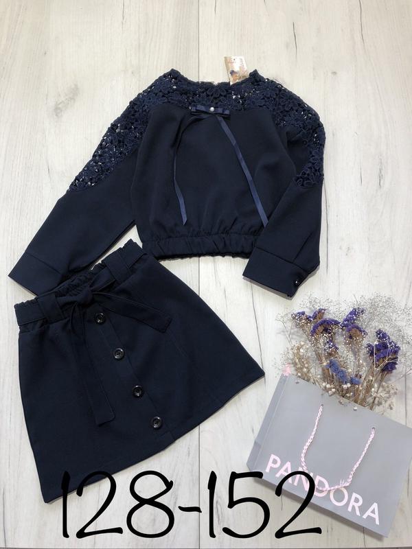 🌺Милашный школьный костюмчик, ткань костюмка и плотный гипюр, рукава кофты на манжетах, на спинке застегивается на молнию, в поясе юбки широкая резинка. размер 128 134 140 146- 152