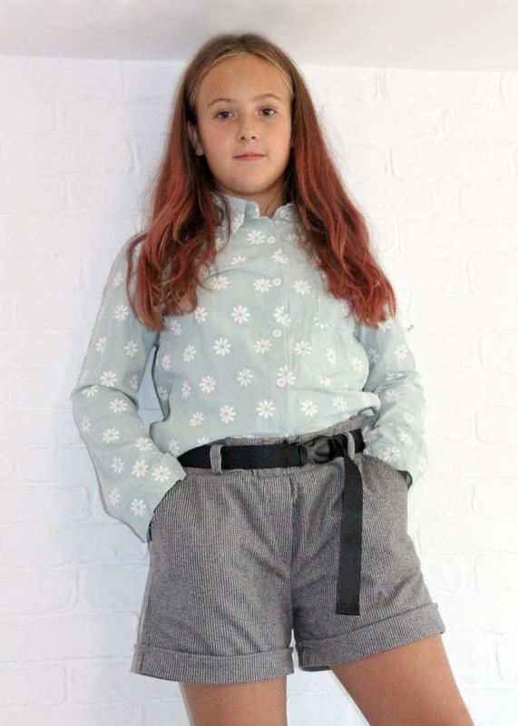 Шорты для девочки с поясом Стильные шорты для девочек, которые отлично подойдут в качестве элемента школьной одежды. Очень удобно и практично. Средняя посадка. По бокам карманы. Шорты выполнены из плотной ткани хорошего качества, В комплект входит модный пояс. Материал: полушерсть Цвет: серый Размер в наличии: 128, 140, 146, 152