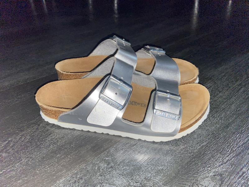 Birkenstock - знаменита німецька компанія-виробник ортопедичного взуття, одна з найстаріших у Європі. Ортопедична колодка, шкіряна устілка та пробкова підошва сприяють підтримці природного положення ноги, мінімізуючи втому при тривалій ходьбі. Спеціальне антибактеріальне просочення виключає розмноження будь-яких мікроорганізмів, і – як наслідок – поява неприємного запаху. Дуже зручне взуття- перевірено особисто. Р-р вказано 33, заглиблення в устілці 21 см Оригінал У відмінному стані