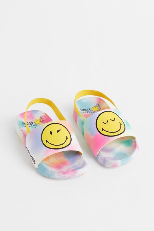 H&M SmileyWorld® x H&M. Пляжные сандалии с мягкими ремешками и набивным рисунком. Формованная ребристая подошва (в размерах 24/25 и 26/27 с резинкой сзади). для больших размеров без резинки 🏷️28-29р__выемка 18см 🛍️ОТПРАВЛЯЮ 2-РАЗА В ДЕНЬ 🚀НОВАЯ и 🚜УКР 💵ПОСЛЕ ПОЛНОЙ ОПЛАТЫ 🍿ТОРГА НЕТ