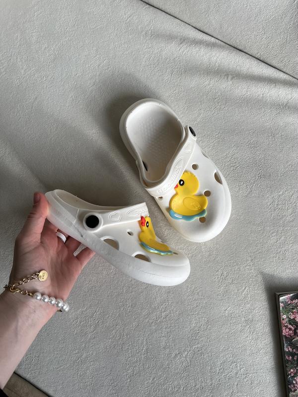 Резиновые тапочки для мальчика или девочки белого цвета с уточкой. Размер по набору 28-29 Стелька 18 см