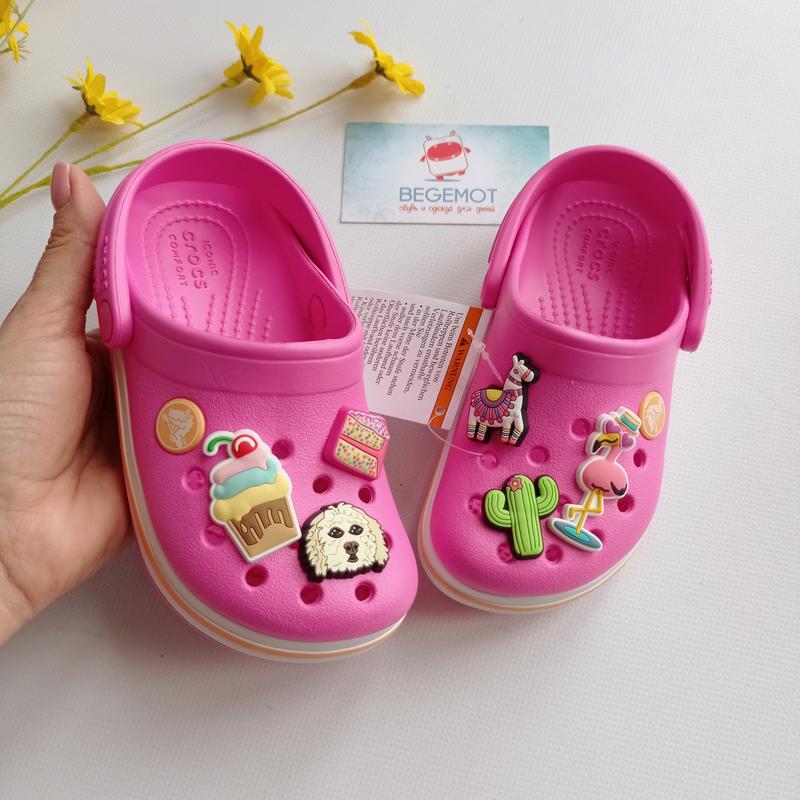 Кроксы оригинальные. Очень красивые и яркие сабики Crocs для девочки. В наличии размеры: с7-15 см полная стелька с9-16.5 см полная стелька с10-17.5 см полная стелька J1-21 см полная стелька J2-21.5 полная стелька J3 22см J4 22,5см Джибитсы идут отдельно, тоже в наличии большой выбор.