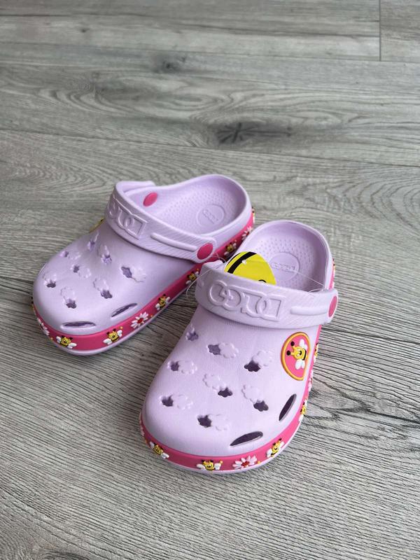 Крокси для дівчинки від українського виробника. Фіолетові із бджілкою.