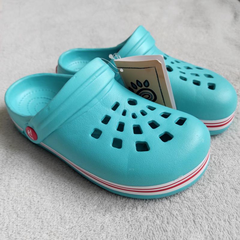 Новые детские кроксы, подойдут как для девочки, так и для мальчика. Цвет - бирюза. Размер: 32(20,1 см); 34(21,4 см). Размер 32 продан!!️ Стоимость указана при оплате на карту, безопасной оплатой +14,4% (сайт снимает за выполнение заказа)!️