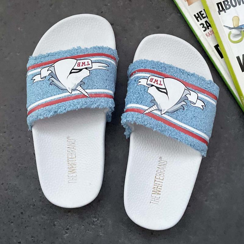 Шлепанцы девочке The White Brand (Испания) состав: натуральный текстиль / 100% поливинилхлорид подкладка: текстиль анатомическая стелька цвет белый / голубой EUR 31, длина стельки 19,3 см