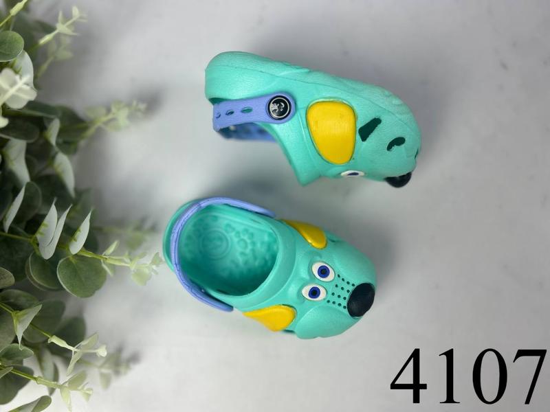 НОВИНКА Код: 4107 Дитячі кроксиз песиком, неймовірно легкі! Розмір: 18/19. Виробництво: Польща. Підошва: 1 см. Повномір. Піно-Гума. Колір: Бірюза. 18/19-11,5 см