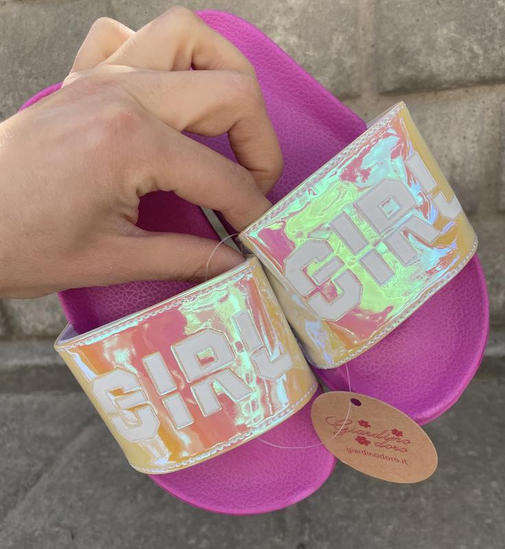 Стильные шлепанцы для девочек Легкая подошва Верх с галограммой Внутри текстильная подкладка Малиновые : 30-19,7 см 32-21 см 34-22 см 35-23 см Розовые: 31-20,5 см 32-21 см 33-21,5 см 35-23 см Білі: 30-20,5 см 32-21 см 33-21,5 см 34-22 см Стелька от края до края