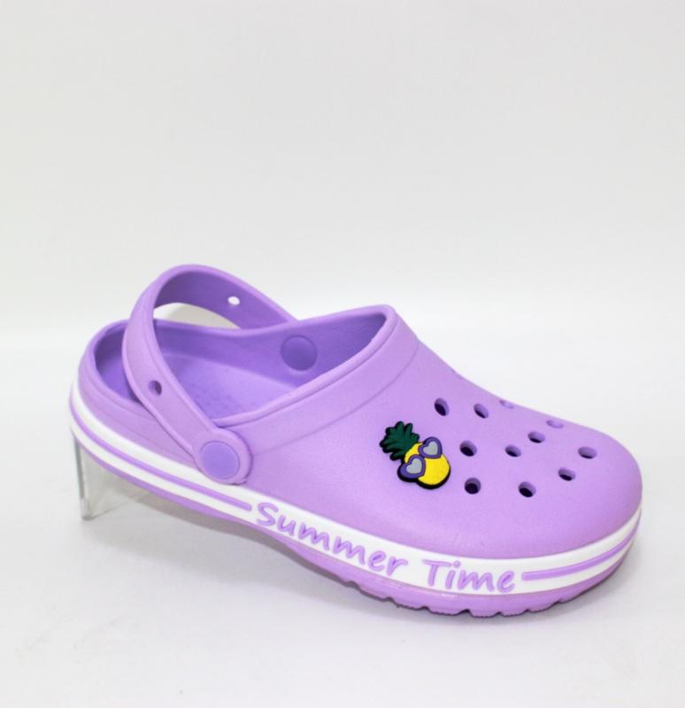 Детские фиолетовые кроксы с ананасом для девочек