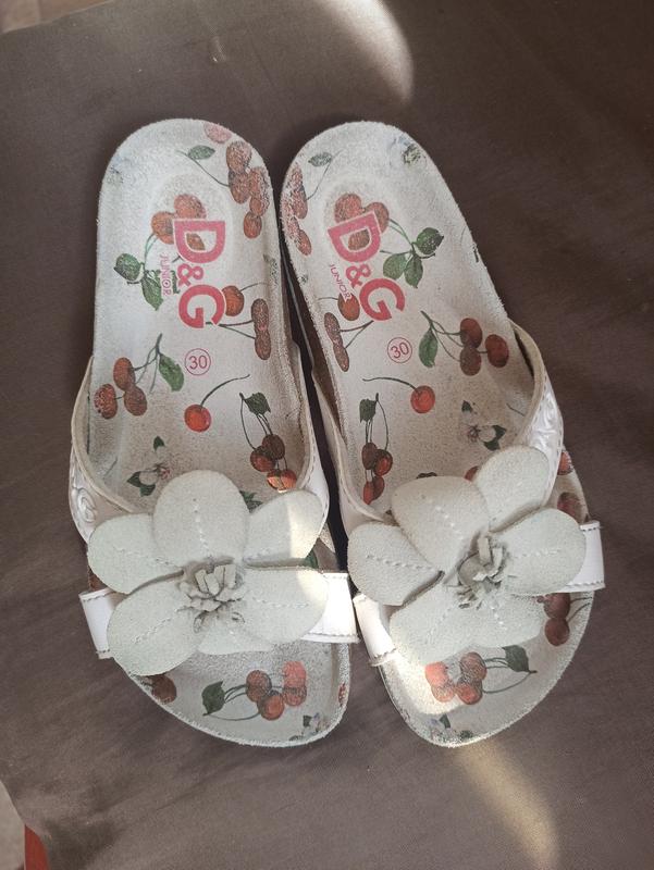 Шлепки кожаные для девочки. Удобные. Выглядят нарядно. Оригинал. Произведены в Испании. Замеры стельки на фото.