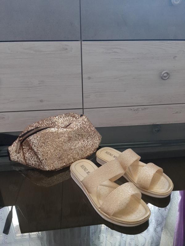 Модные, стильные, шлепанцы с золотистыми блестками для девочки.