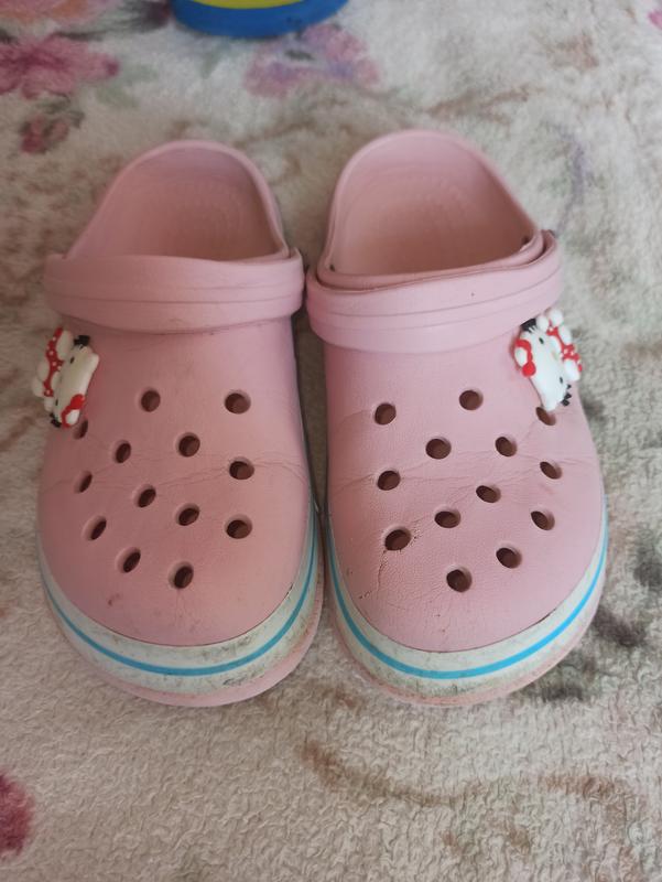 Очень удобные, комфортные, мягкие кроксы для девочки, 30 - 31 размер С удовольствием носили, но уже выросли. Ободок на подушке немного на вид, как выглядит трещенка, но для дома - это супер вариант, подошва толстенька, что важно, если бегать по камням, состояние обуви хорошее, кроме этих трещинок. Еще и для девочки розовые с hello kitty, всегда будет актуально.