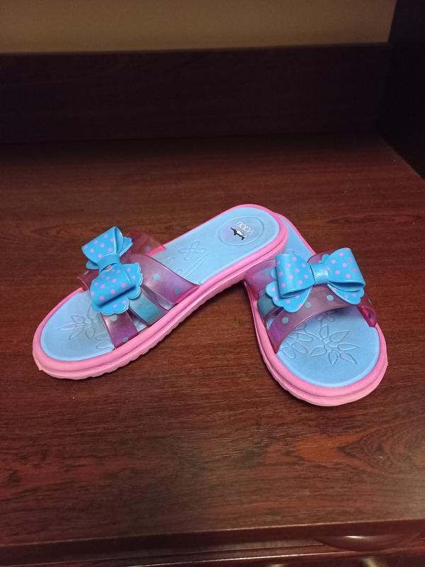 Шлёпки на девочку в отличном состоянии. Размер 29. Лёгкие на ножке, удобные, дефектов нет никаких, стираются отлично. Товар отправляю Новой и Укрпочтой.