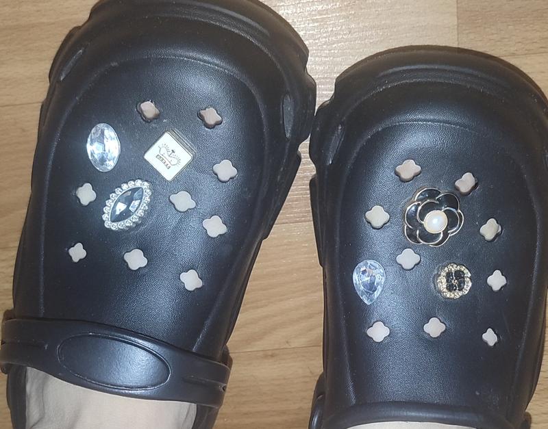 новые детские кроксы черного цвета с прикольными сменными украшениями, очень легкие и мягкие,истелька может выниматься.