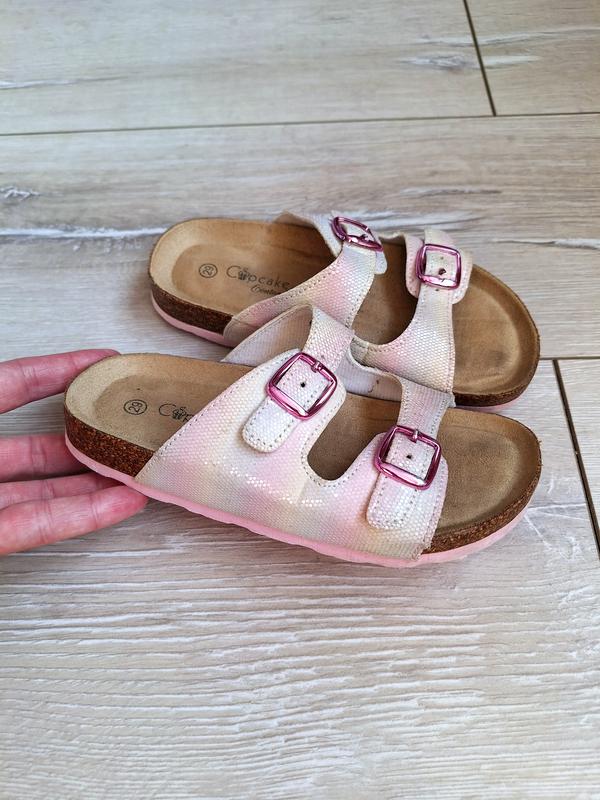 p-p 29, по стельке от загиба до загиба 17.5 см( смотрите фото с сантиметром), шлепанцы на девочку Capacake, удобные и легкая, мягкая стелька,стан отличный, как новые