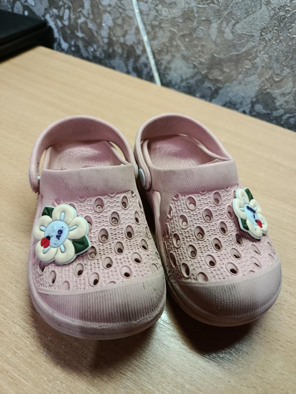Шльопанці для двору. Дитина ходила лише в дворі, вони випрані, просто сліди носіння залишилися. Цілі, без пошкоджень. Довжина 16 см. За додатковими питаннями звертайтеся. Дивіться решту оголошень, ціни символічні, так як речі не зношені, викинути дуже шкода.