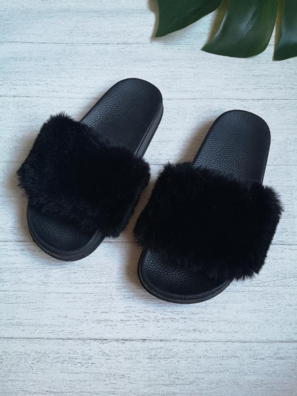 Классные мохнатые шлепанцы на девочку. Заявленный размер 33 - 34.