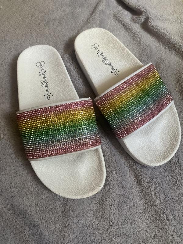 Детские подростковые шлепанцы. Со стеклянными стразами. На солнце прям горят. Состояние очень хорошее