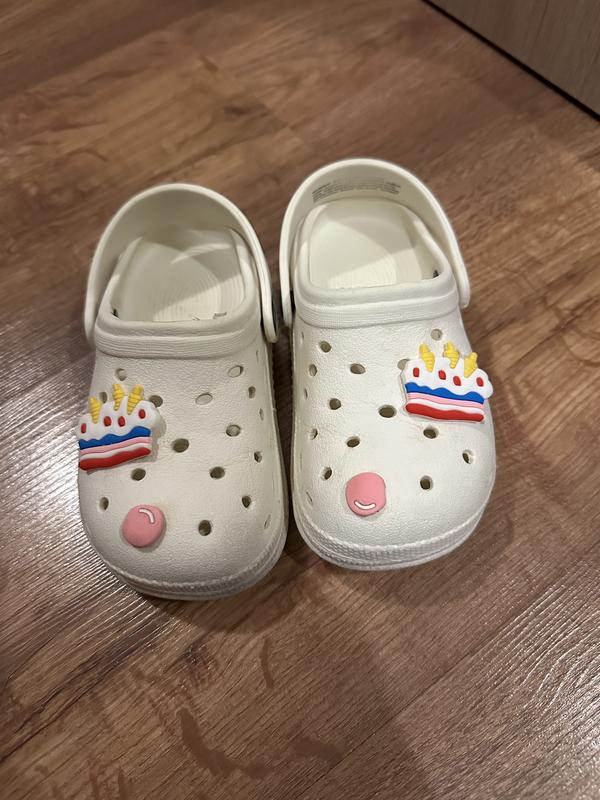 Надзвичайно легенькі та дуже зручні крокси. В дуже гарному стані Колір молочний На довжину стопи до 15 см. Розмір, позначений на товарі, CN ‘21-22’, такий самий як EU ‘24,5’.