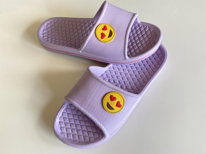 Летние ,лёгкие ,практичные универсальные шлёпанцы с украшением смайлик для девочки сиреневого цвета из ПВХ .Размер шлёпок остался только 32/33 (21.5 см по стельке ) На возраст 7-9 лет .Подойдут для повседневной носки и для отдыха
