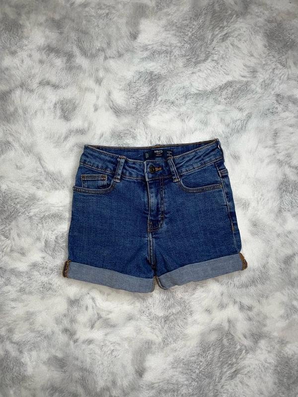 Джинсовые шортики с подкатом Спереди и сзади карманы Застёгиваются на змейку+ пуговка. На талии регулируемая утяжка Состояние идеальное без дефектов 🏷Mango 9лет/134 р Длина 24. ПОТ 27+-