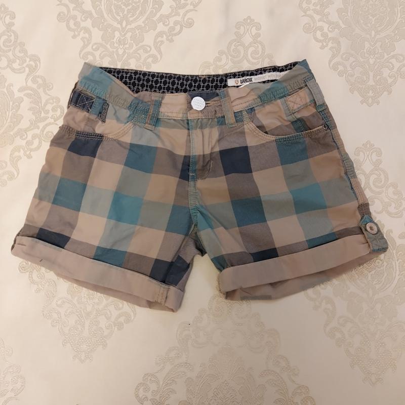 Стильні якісні шорти .Стан нової речі. Склад -100%котон. На талії є ризінка-утяжка. Заміри на фото.