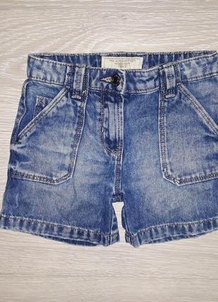 Фирменные, джинсовые шорты девочка на 4 года. Застегивается на пуговичок и молнию, есть утяжка. Состав100% хлопок. Состояние отлично Замеры: длина 25 см, шаговый шов 8 см, талия 28,5 см, попа 33 см, посадка 17,5/25,5 см, ширина штанины внизу 19 см