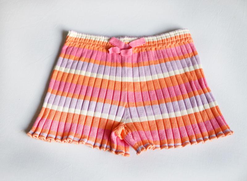 Шорти H&M р.98-104, склад 70% віскоза, 30% поліамід. Шорти мають талію на гумці з декоративним бантом, а краї штанин обшиті оверлоком. Довжина 22см, пот 24 см. Сток, без паперової бірки.