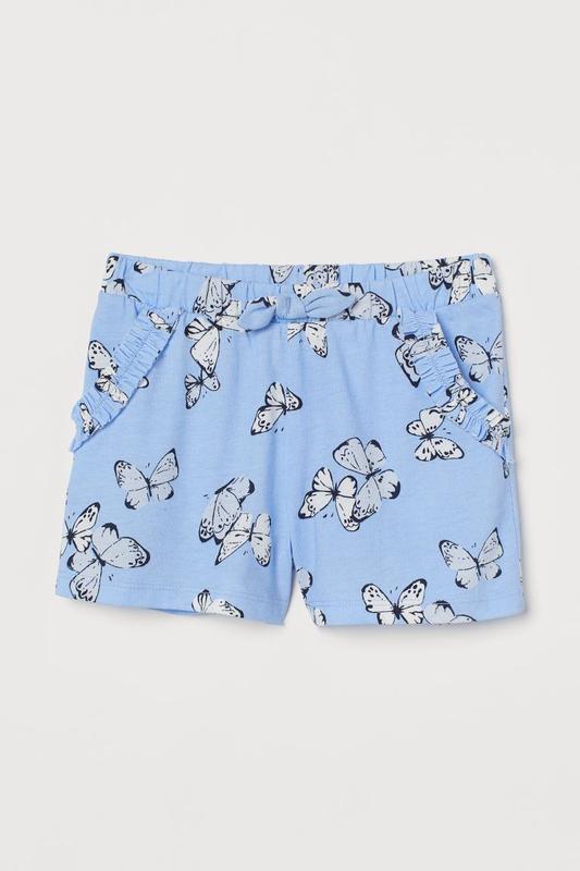 Шорти з м’якого візерункового трикотажу з прихованою резинкою на талії фірми hm. Шорти з декоративним бантом спереду та бічними кишенями з оборками. Склад: Бавовна 100% 2-4 роки на зріст 98/104см ПОТ - 24см, довжина від поясу - 21см 4-6 років на зріст 110/116см ПОТ - 25см, довжина від поясу - 23см 6-8 років на зріст 122/128см ПОТ - 26см, довжина від поясу - 26см