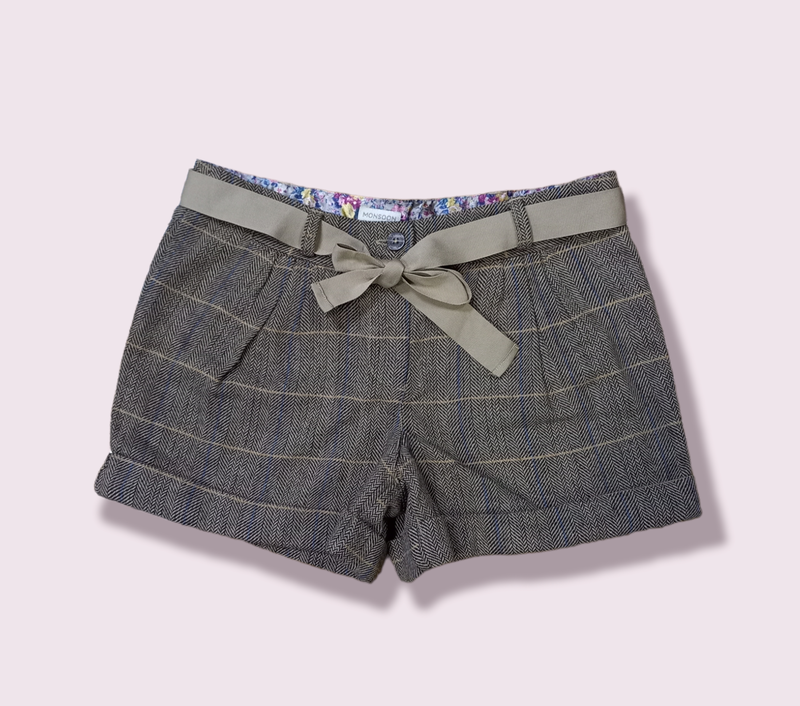 Шорты шерсяные в клетку ПОЛУОБХВАТ ТАЛИИ 36 ПОЛУОБХВАТ БЕДЕР 47 ДЛИНА ИЗДЕЛИЯ 28 ВНУТРЕННЯЯ ДЛИНА 9 ПОСАДКА ВПЕРЕДИ 22 ПОСАДКА СЗАДИ 30 ПОЛУОБХВАТ ШТАНИНЫ 28