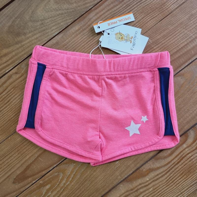 Коротенькие трикотажные шортики для девочки. 664157-62 Цвет: ярко-розовый. Состав: 77% полиэстер, 19% хлопок, 4% эластан. Рост 62 (3-6 мес.)