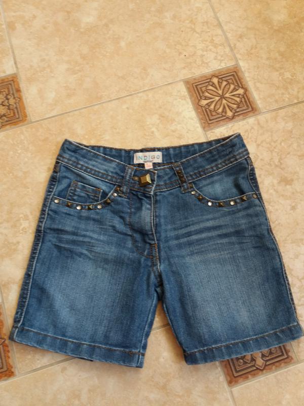 Джинсовые шорты с декором. Идут на 6-7 лет. Состояние отличное. Полуобхват пояса 30 см. Есть утяжка. Длина внешнего шва шорт 30 см. Внутреннего шва 11.5 см.