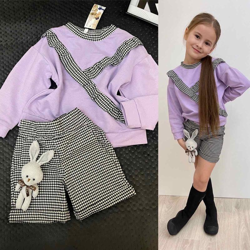 Цена 380грн🔥🔥🔥 Новые стильные костюмчики💜 В размерах:116-140 116:длина кофты 37, рукав от горловины 41,5см, длина шорт 27,5, пояс хорошо тянется, сама ткань тоже очень хорошо тянется 122:длина кофты 39, рукав 43, длина шорт 29см 128:длина кофты 41, рукав 45, длина шорт 30см 134:длина кофты 42, рукав 47, длина шорт 30см 140:длина кофты 45, рукав 50, длина шорт 31см Рукав замерный от горловины Игрушку можно снять