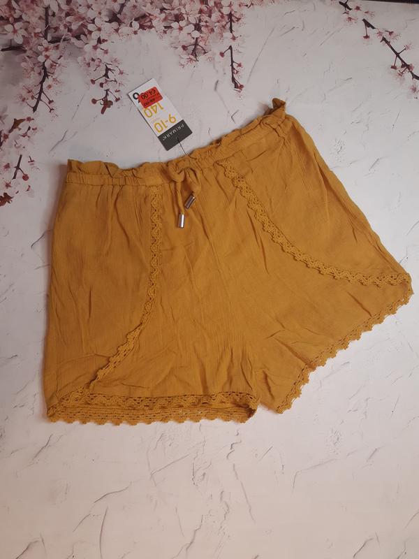 Легкие вискозные шорты для девочки ✔очень легкая ткань - жатка - идеально на лето🌞 ✔на мягкой резинке на поясе ✔с вязаным кружевом😍 ✔100% вискоза - не парит🌱 ✔в 3х цветах🌈 Горчичный размеры: 134 см (8/9 лет) 140 см (9/10 лет)