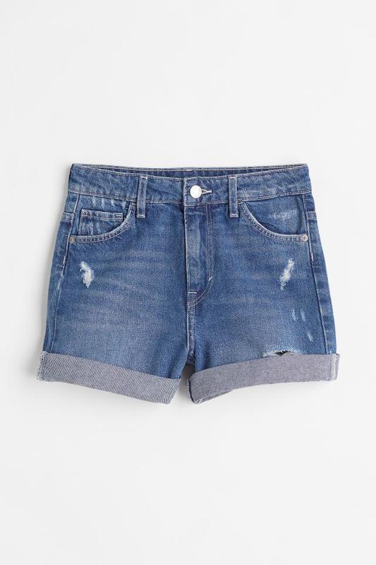Шорты с пятью карманами из стираного хлопкового денима с потертыми деталями. Расслабленная посадка. Высокая талия с регулируемой резинкой, молнией и пуговицей. Размер 9-10 лет/рост 140. Длина по бокам 30, пояс 32-33, бедра 40. Размер 11-12 лет/рост 152. Длина по бокам 32,5, пояс 33-34, сегна 42. Размер 12-13 лет/рост 158. Длина по бокам 34,5, пояс 34-35, бедра 43,4.