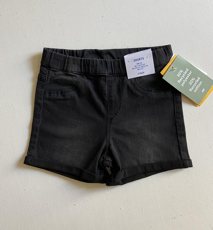 Джинсовые шорты для девочки. Резинка в поясе средней ширины. Размер 5-6 лет. Рост 116см. Состав: 67% хлопок, 30% полиэстер, 3% эластан