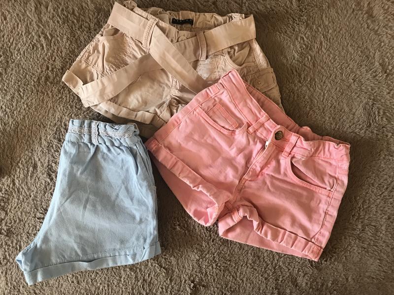 Шорты в отличном состоянии ( голубые лен в подарок Общая длина 26 см пот 28 см поб 35,5 см Розовые материал джинс, песочные - проданные